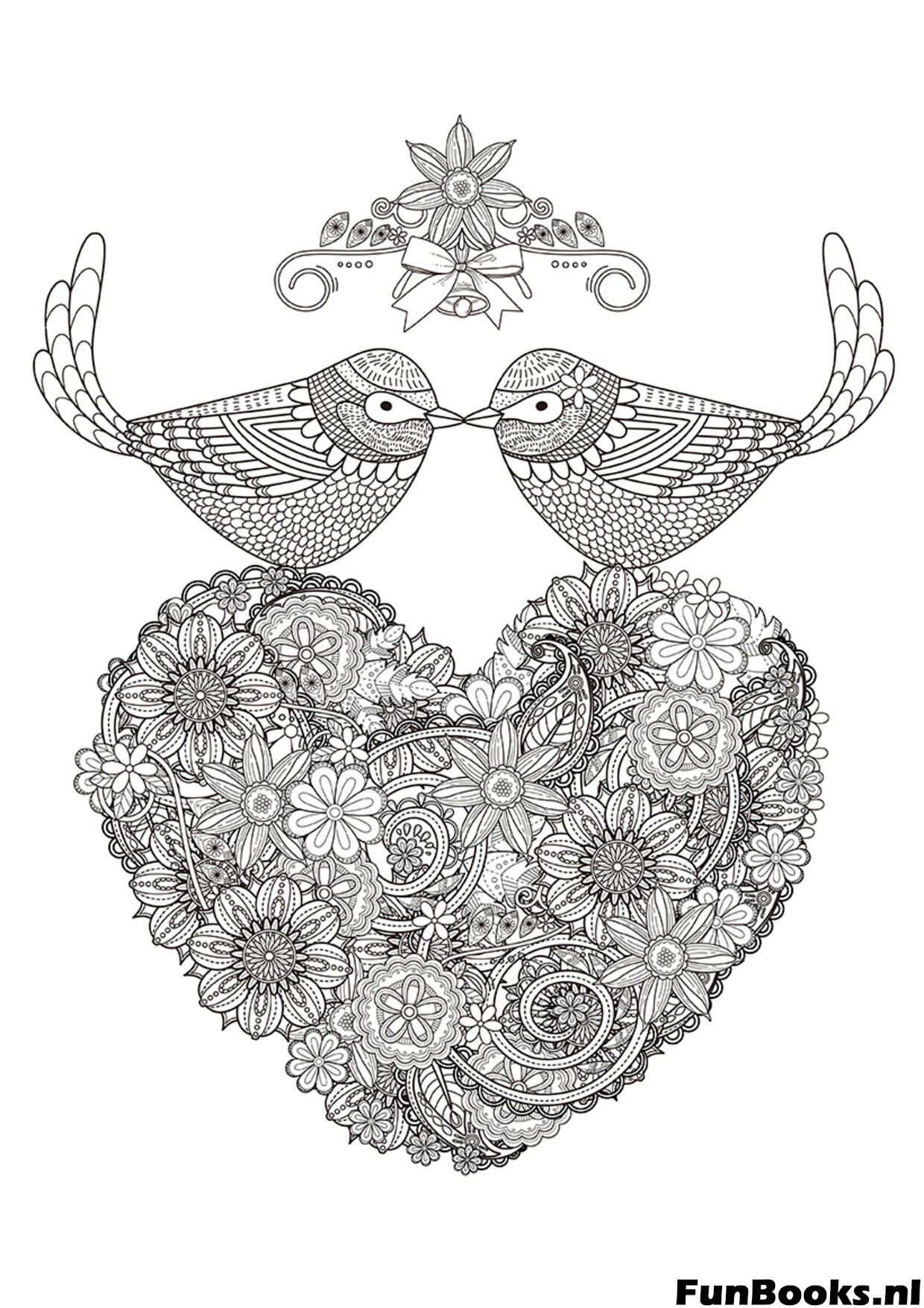 Dwergpapegaaien Bloemen Hart Kleurplaat