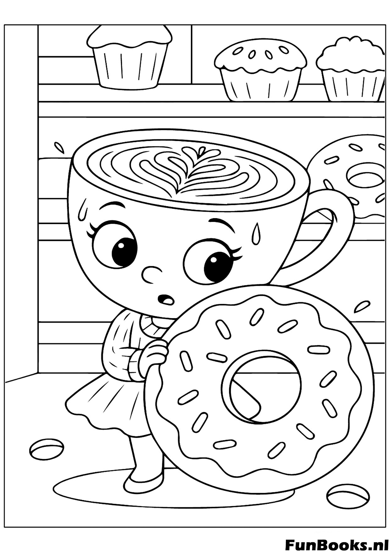 Hungriger Cappuccino Riesen-Donut Ausmalbild