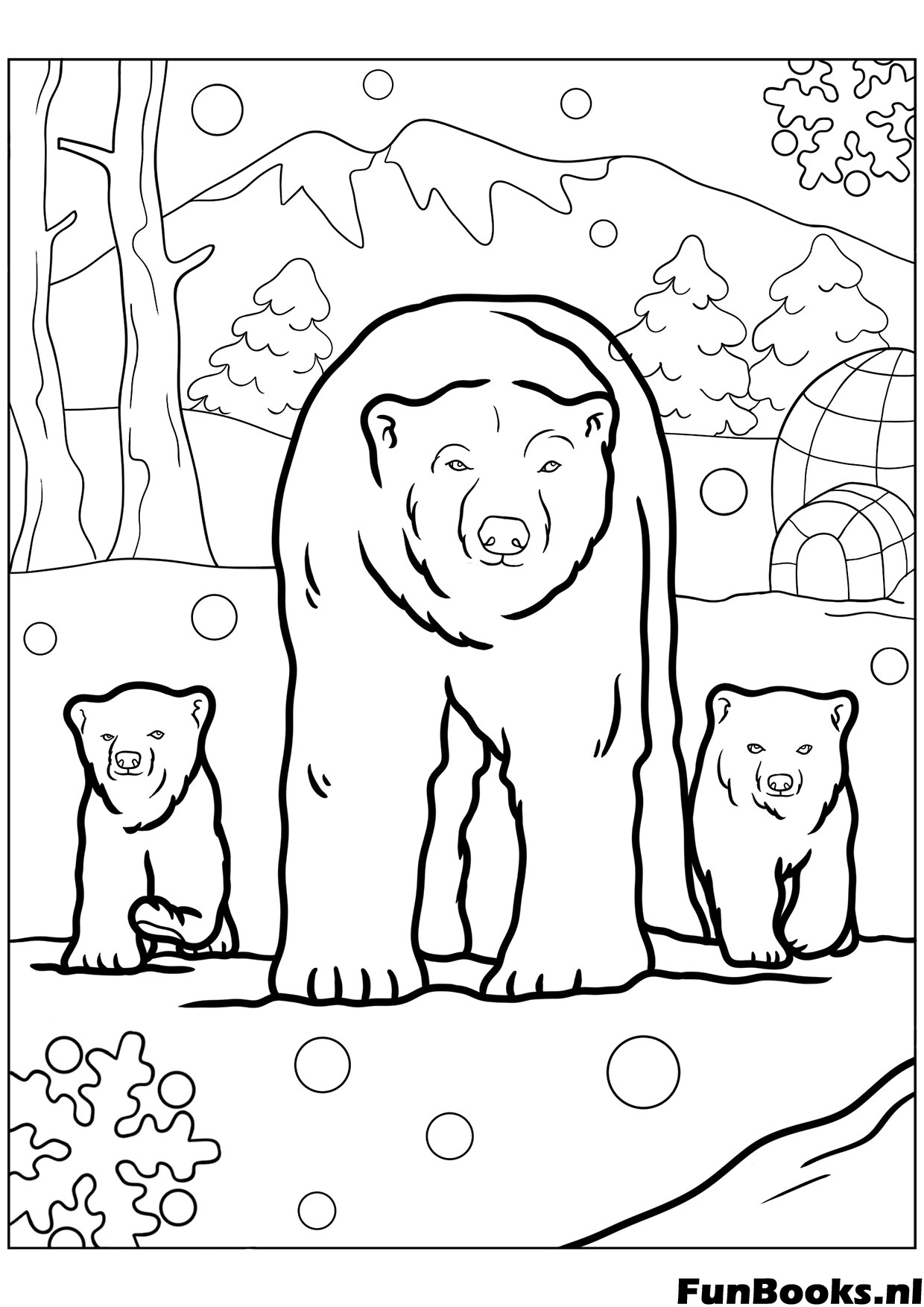 IJsbeer Familie in het Arctisch Gebied Winter Kleurplaat