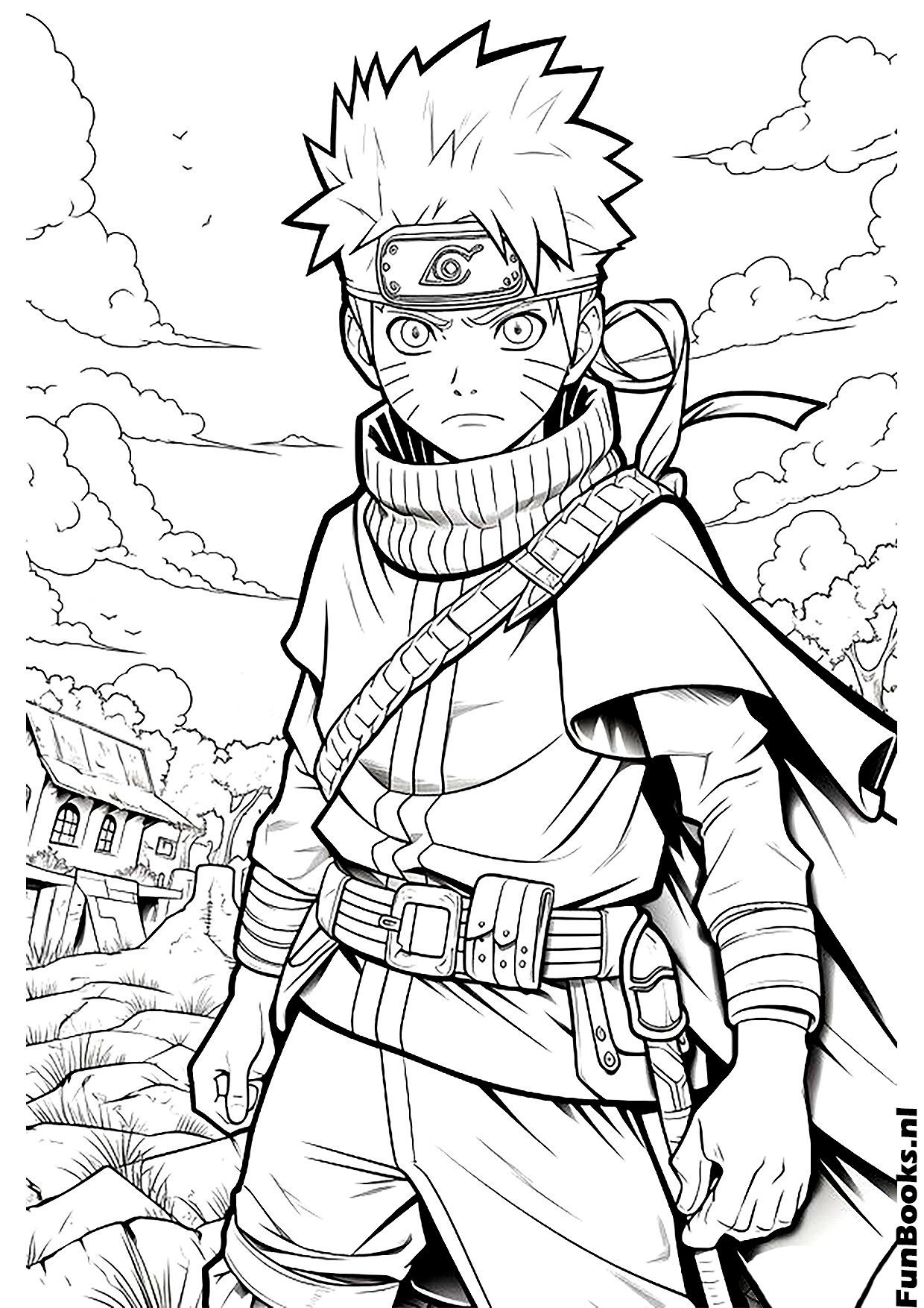 Konohamaru Sarutobi usando su larga bufanda luciendo heroico dibujo para colorear