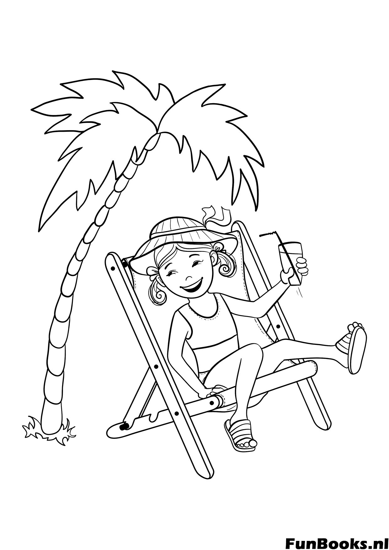 Mädchen entspannt im Strandstuhl Ausmalbild
