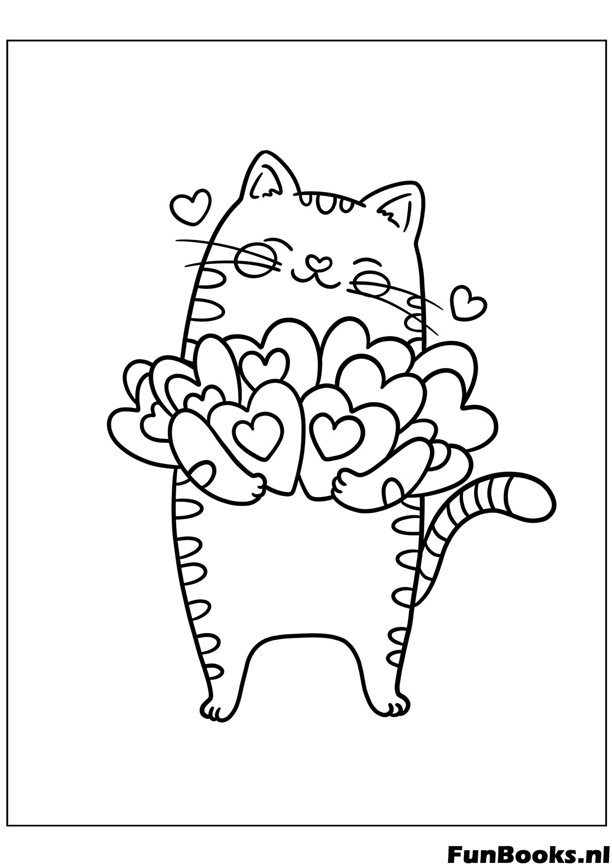 Schattige Kat Houdt Hartenboeket Kleurplaat