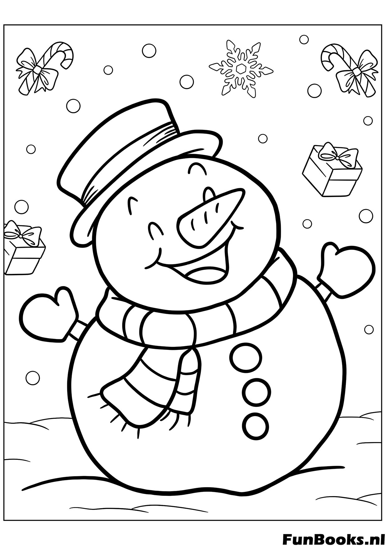 Smiling Snowman with a Top Hat Coloring Page